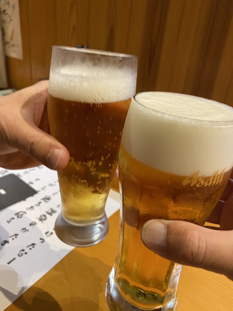 渓流を歩き、疲れた体で温泉に入った後のビールが最高です。