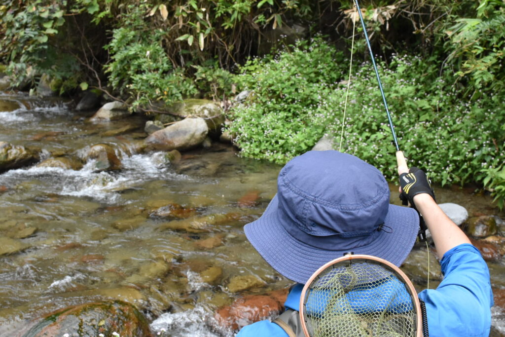 実際にそのポイントにフライを投じ、ドリフトさせる。