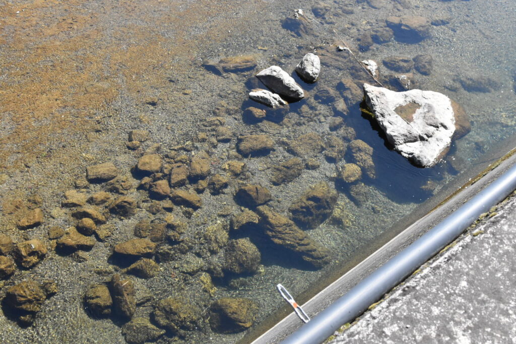 いいポイントを上から覗くとかなりのアマゴが見られます。