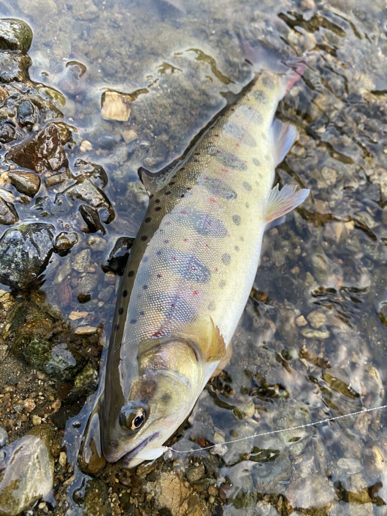 これはドロッパーのニンフで釣れた魚です。