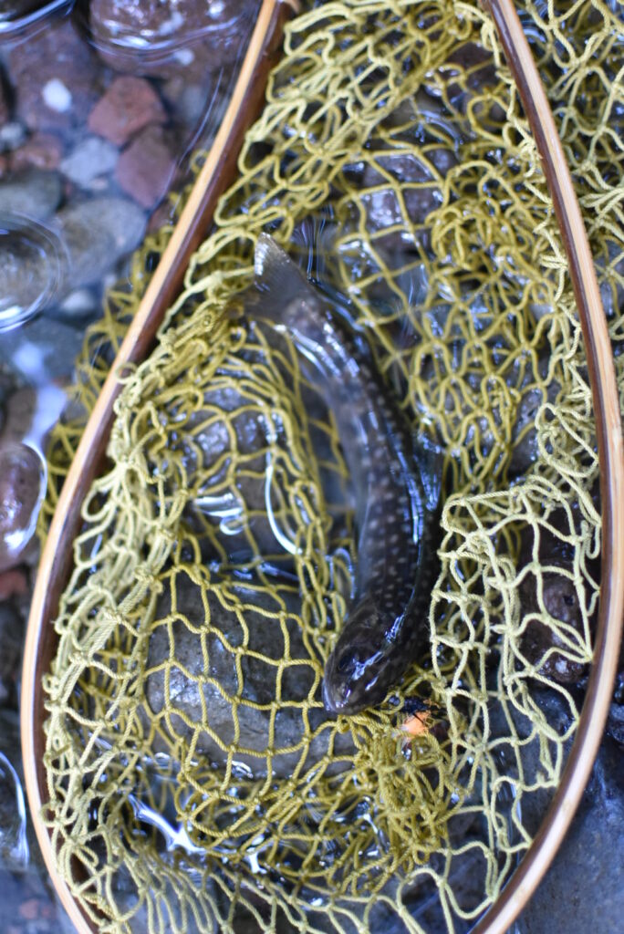 Sさんが釣った小さなゴギ。