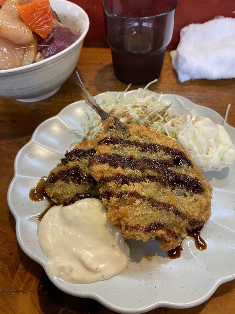大好きなアジフライをがっつく!